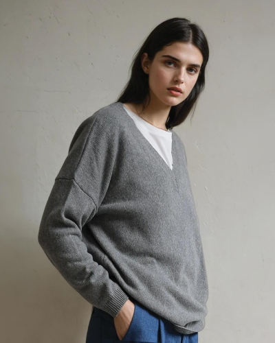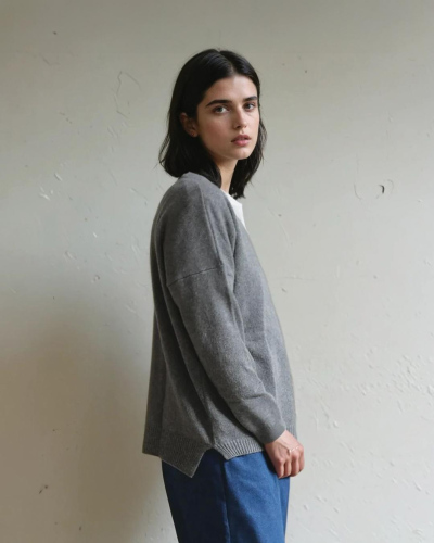 100% cashmere V neck sweater. Back a little bit longer for comfort. High quality soft cashmere. Made in Italy